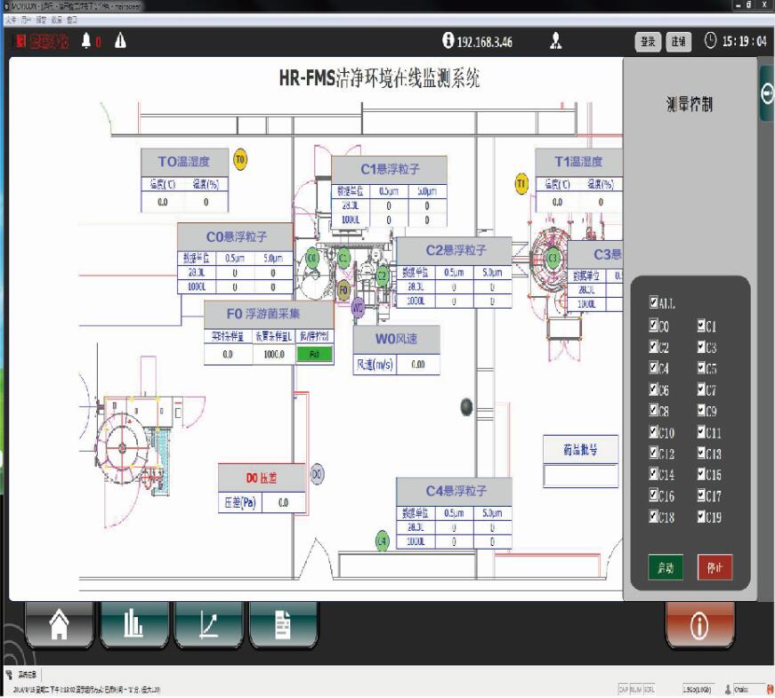 HR-FMS潔凈環(huán)境在線監(jiān)測系統(tǒng)主要由測量傳感器、真空泵控制系統(tǒng)、網(wǎng)絡(luò)機(jī)柜,報(bào)警系統(tǒng)和上位機(jī)監(jiān)控軟件五大部分組成,可實(shí)現(xiàn)對(duì)潔凈室中潔凈度、溫濕度、壓差、風(fēng)速等參數(shù)的實(shí)時(shí)監(jiān)測,并完成數(shù)據(jù)儲(chǔ)存、管理等功能。